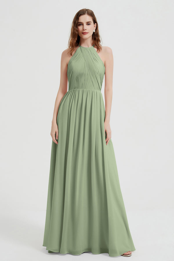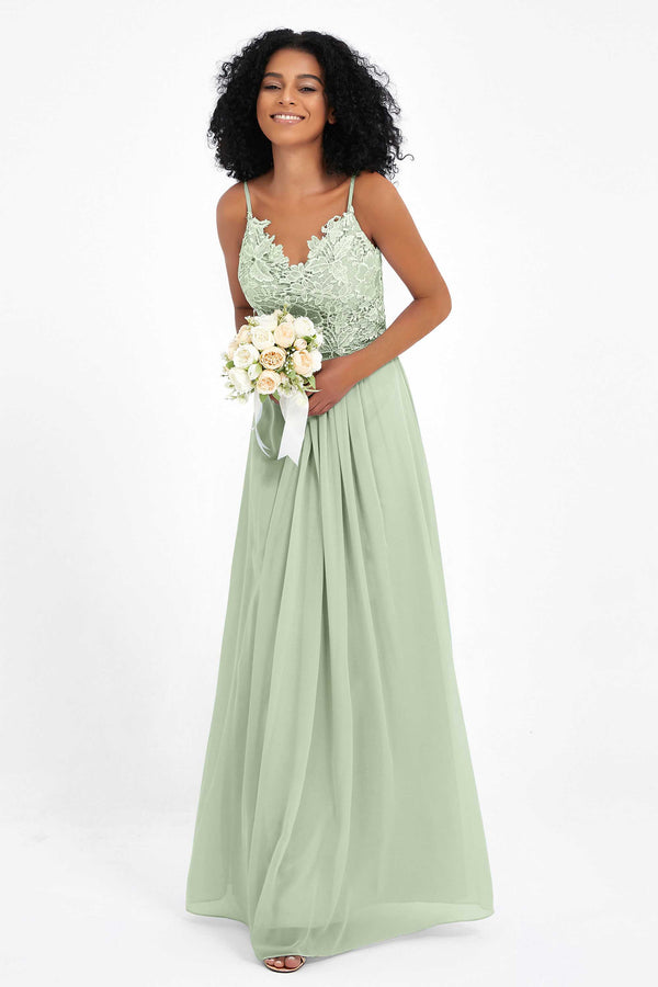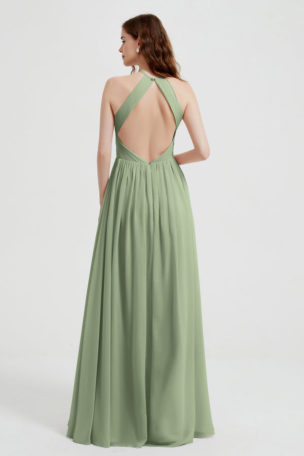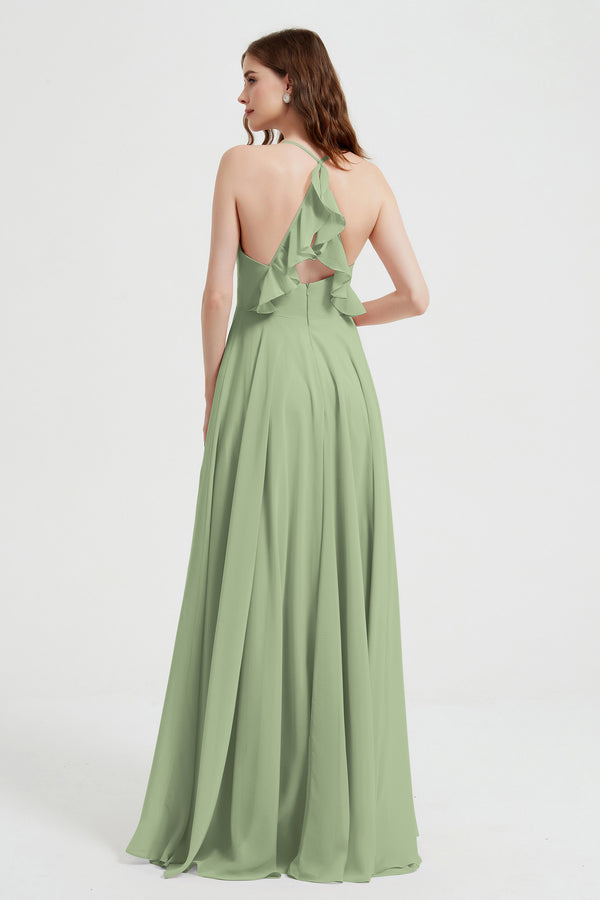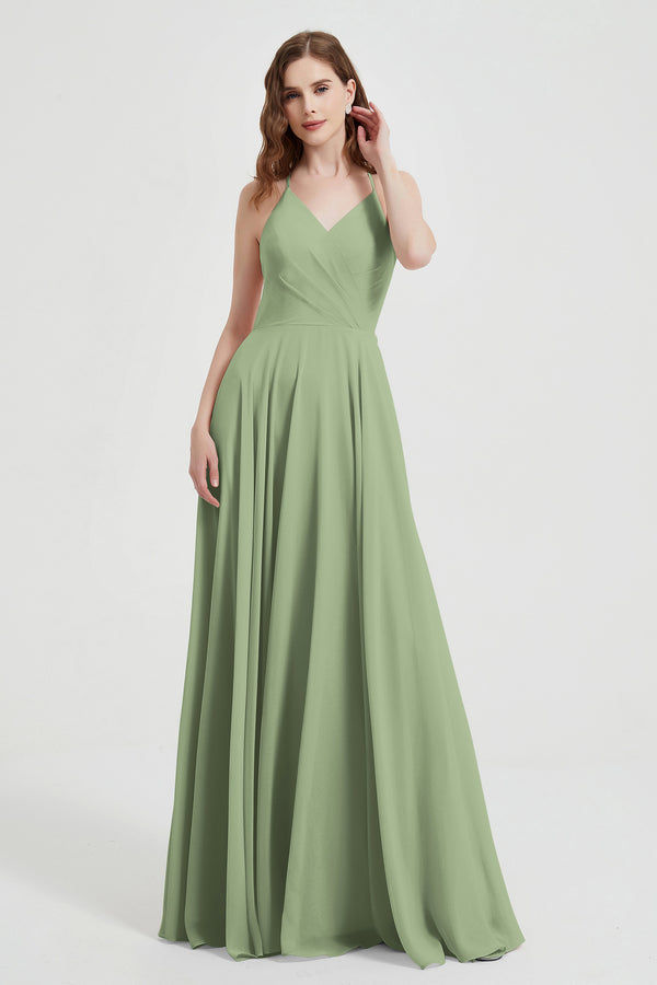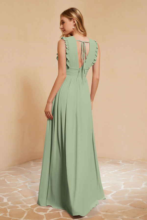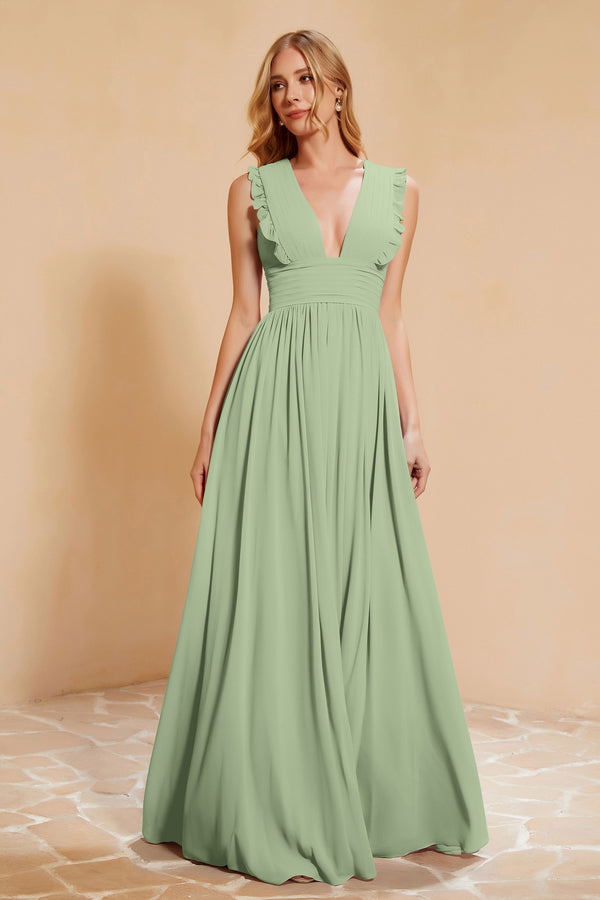 Deep V-neck Chiffon Long Bridesmaid Gown