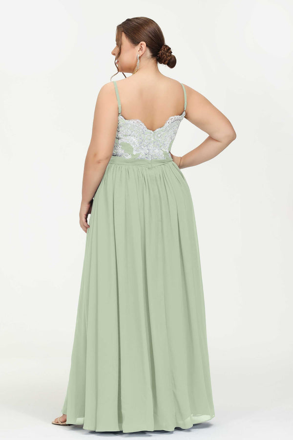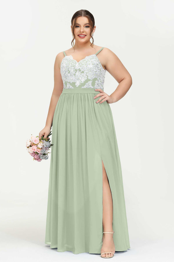Spaghetti Straps Applique Floor-Length Dress With Slit