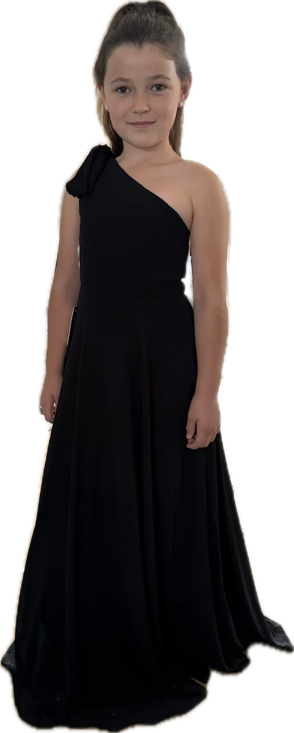 Make a statement with this elegant A-line dress featuring a bow one-shoulder neckline. The ruched bodice creates a flattering texture. Ideal for bridal party, this chiffon dress ensures your little bridesmaid will look both stylish and sophisticated.