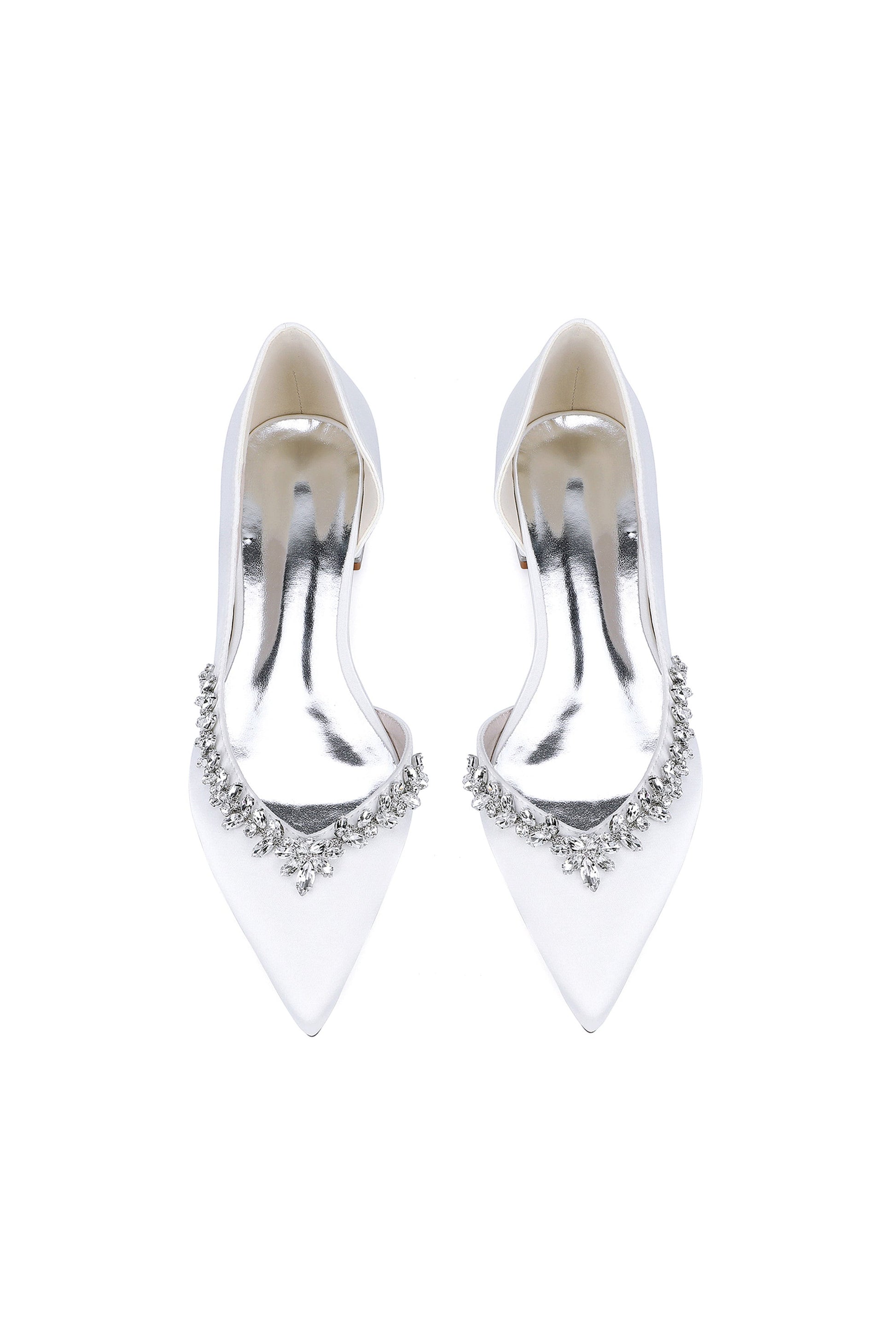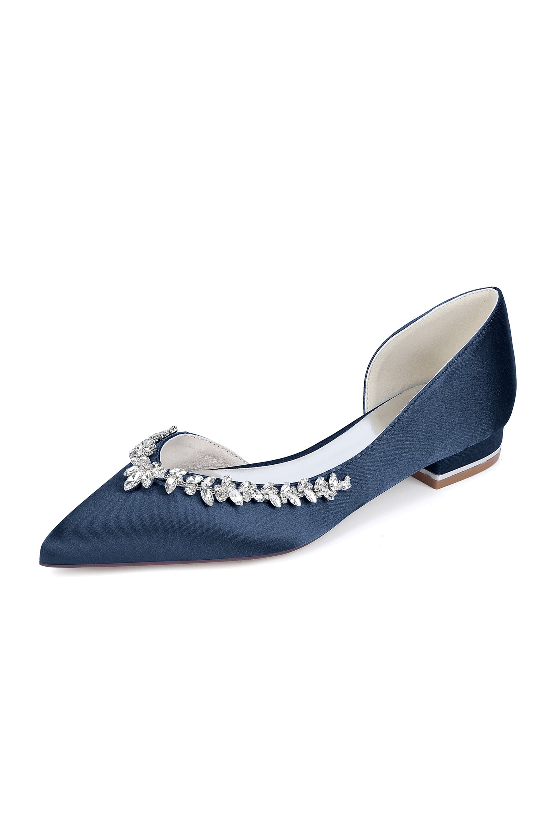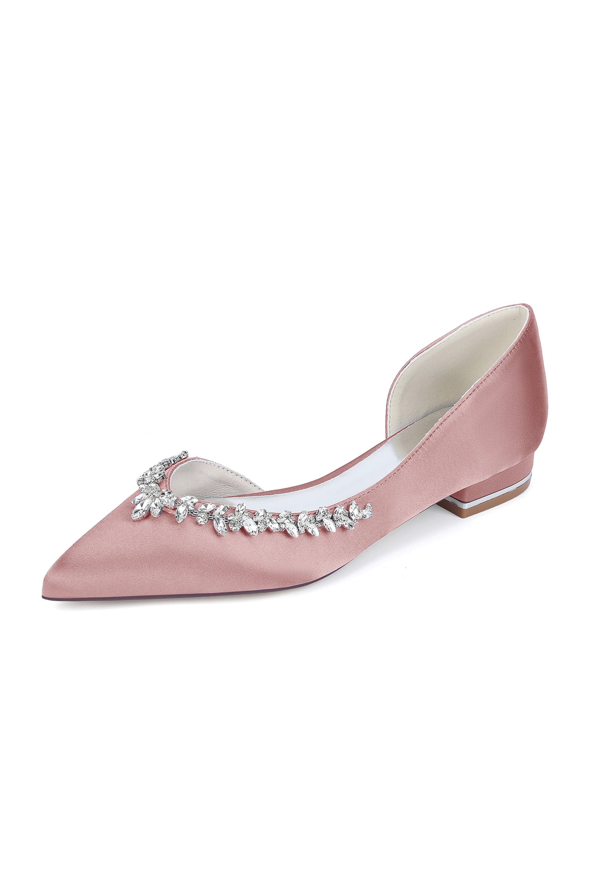 Classy Rhinestone Pointed Toe Low Chunky Heels