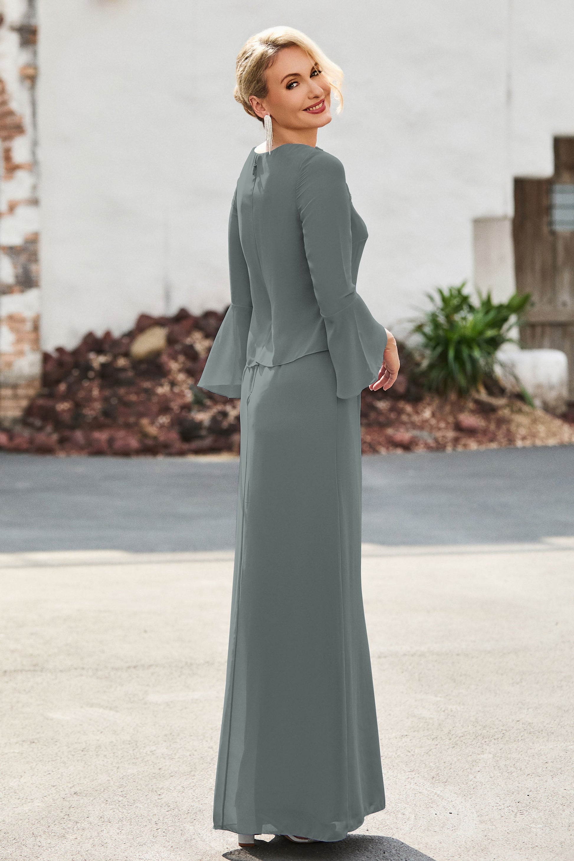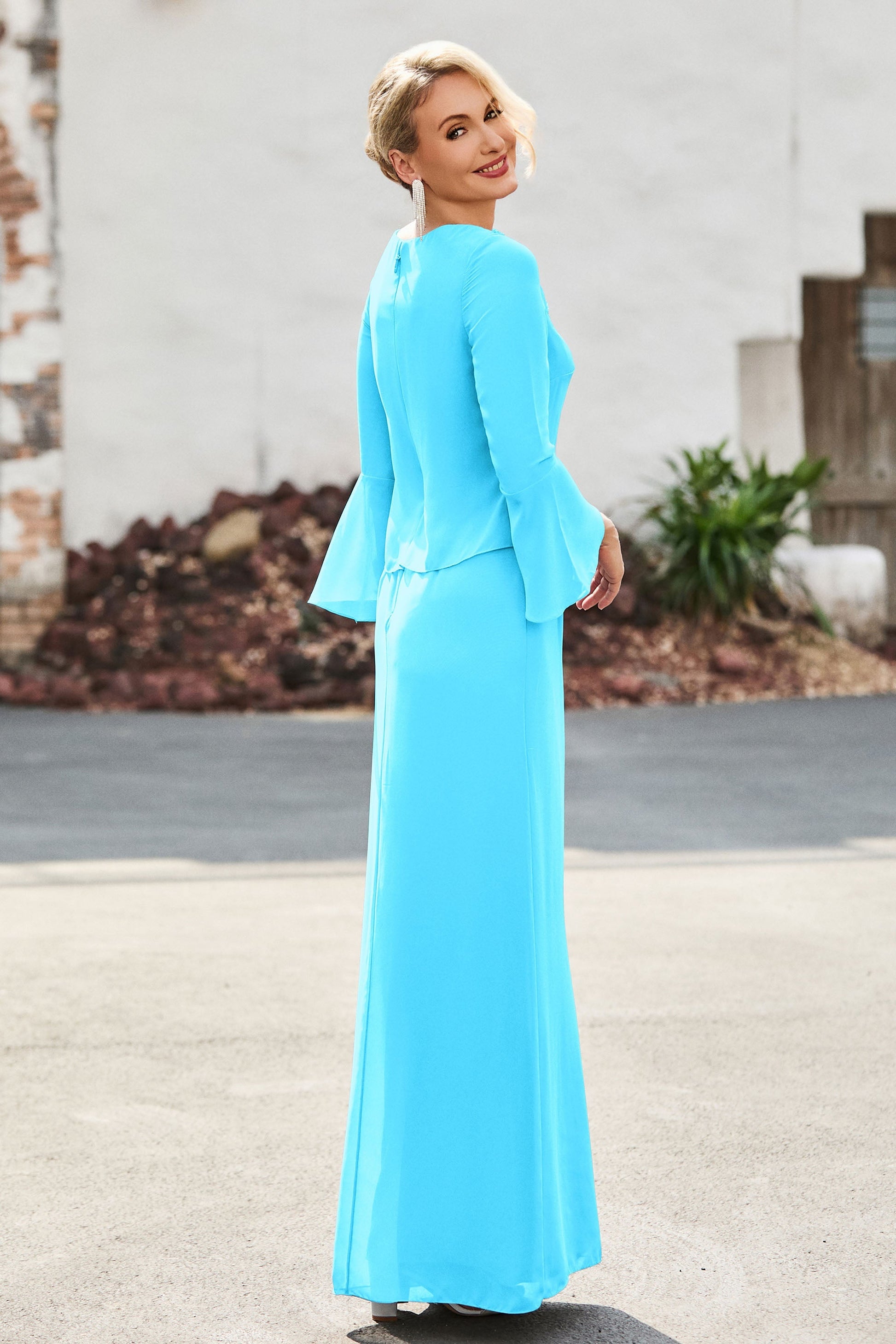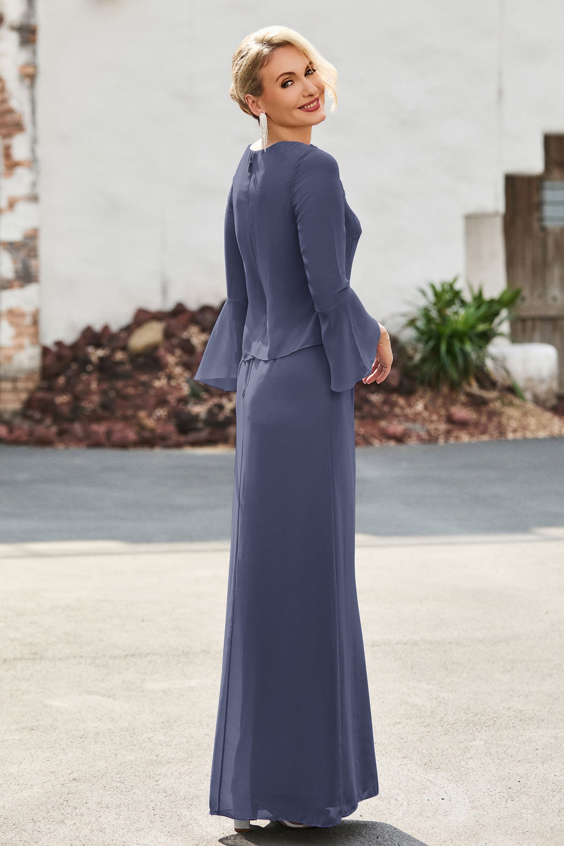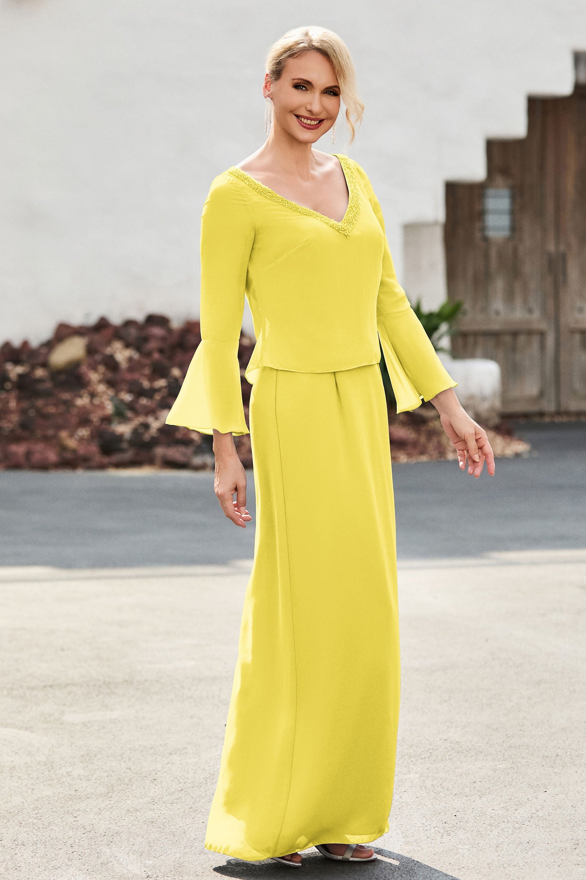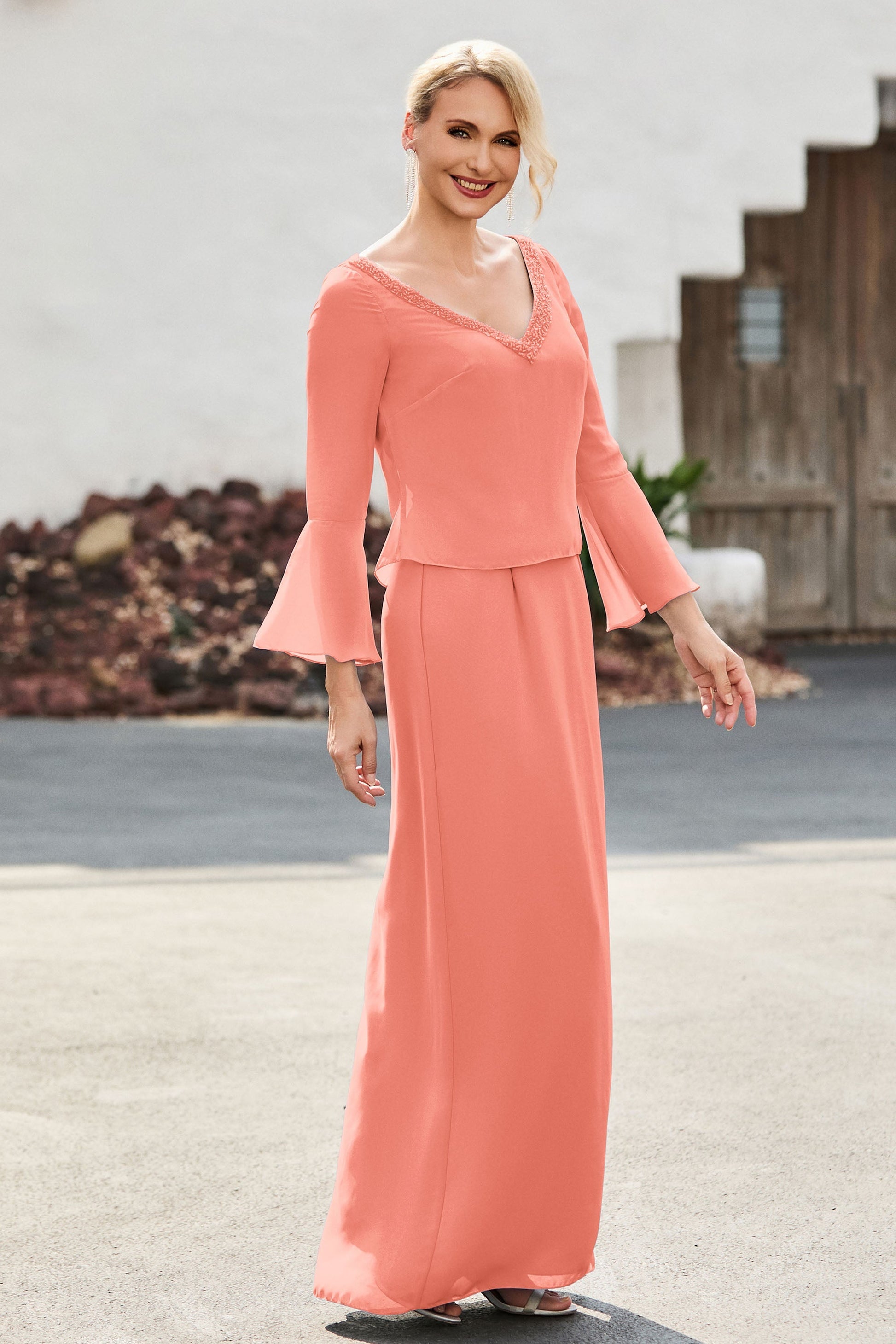 This dress features a flattering sheath silhouette, with a beaded v-neckline that exudes sophistication. A side slit adds graceful movement, while delicate beaded embellishments provide a hint of sparkle, enhancing its elegant charm. Perfect for formal occasions, this dress blends timeless style with modern glamour.