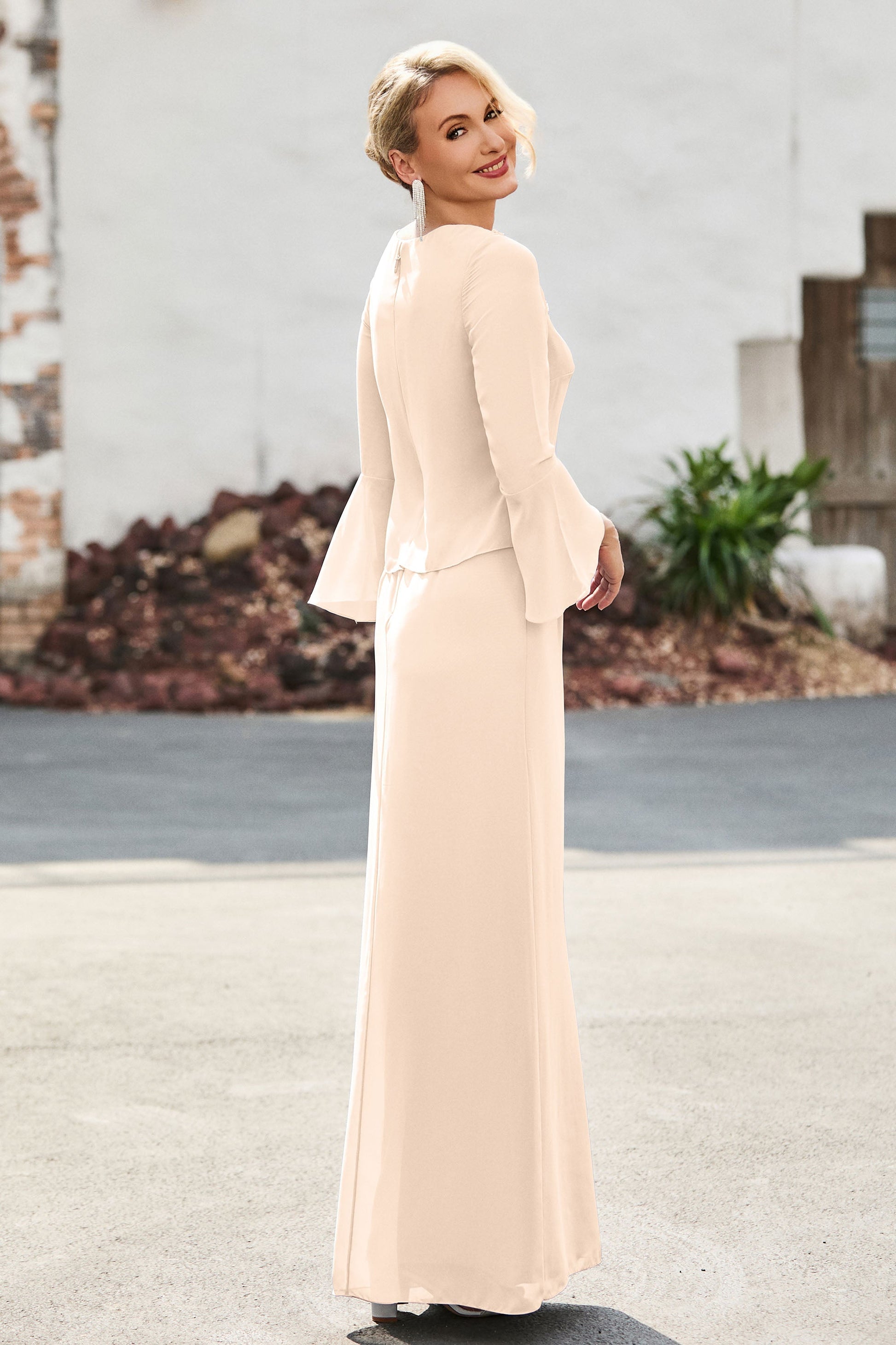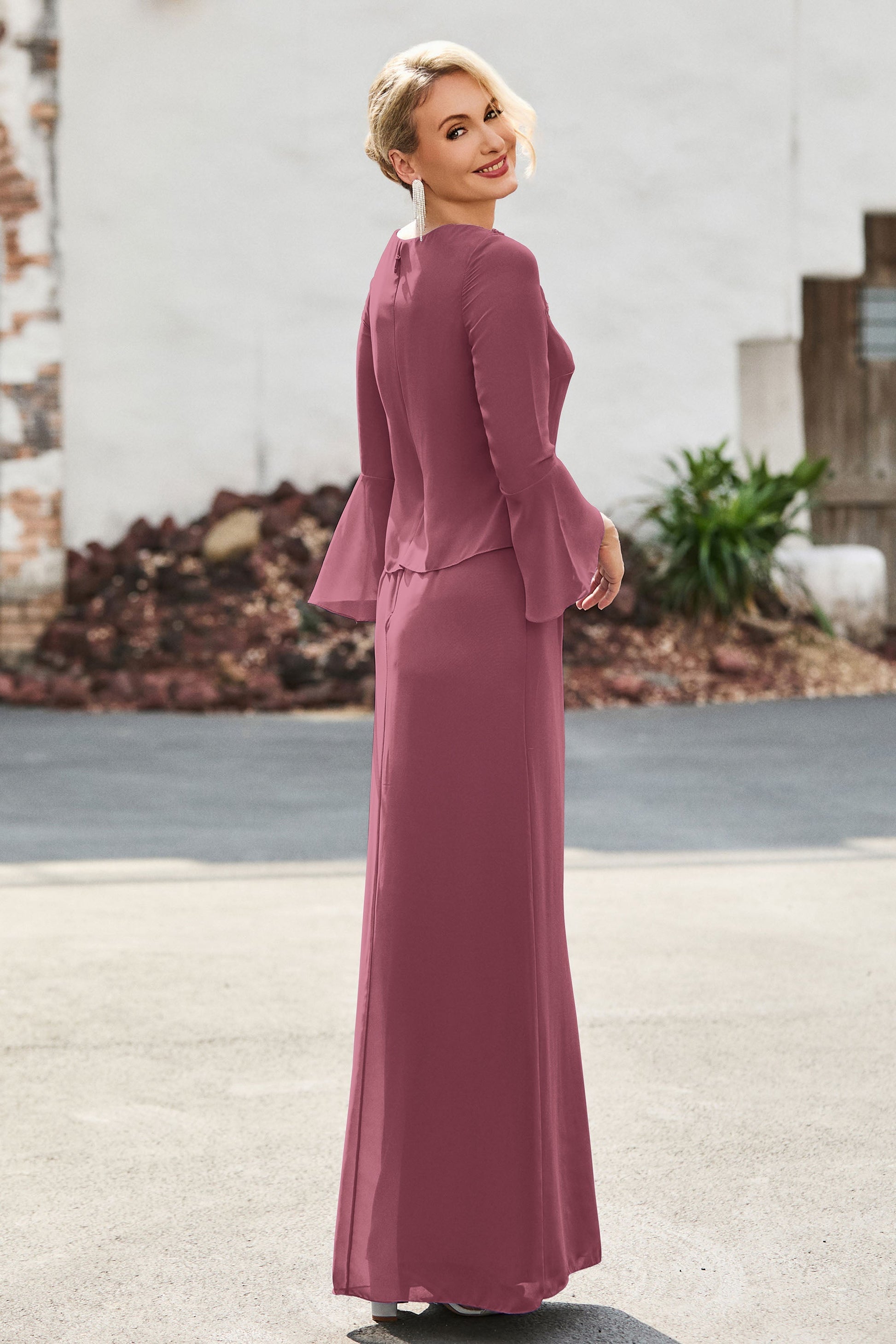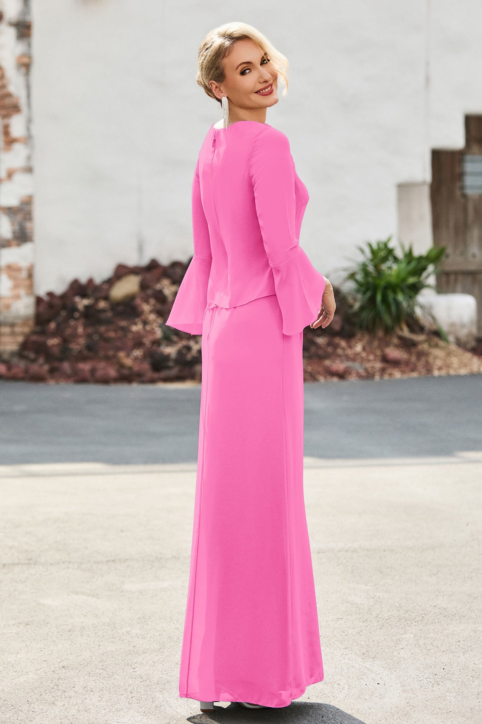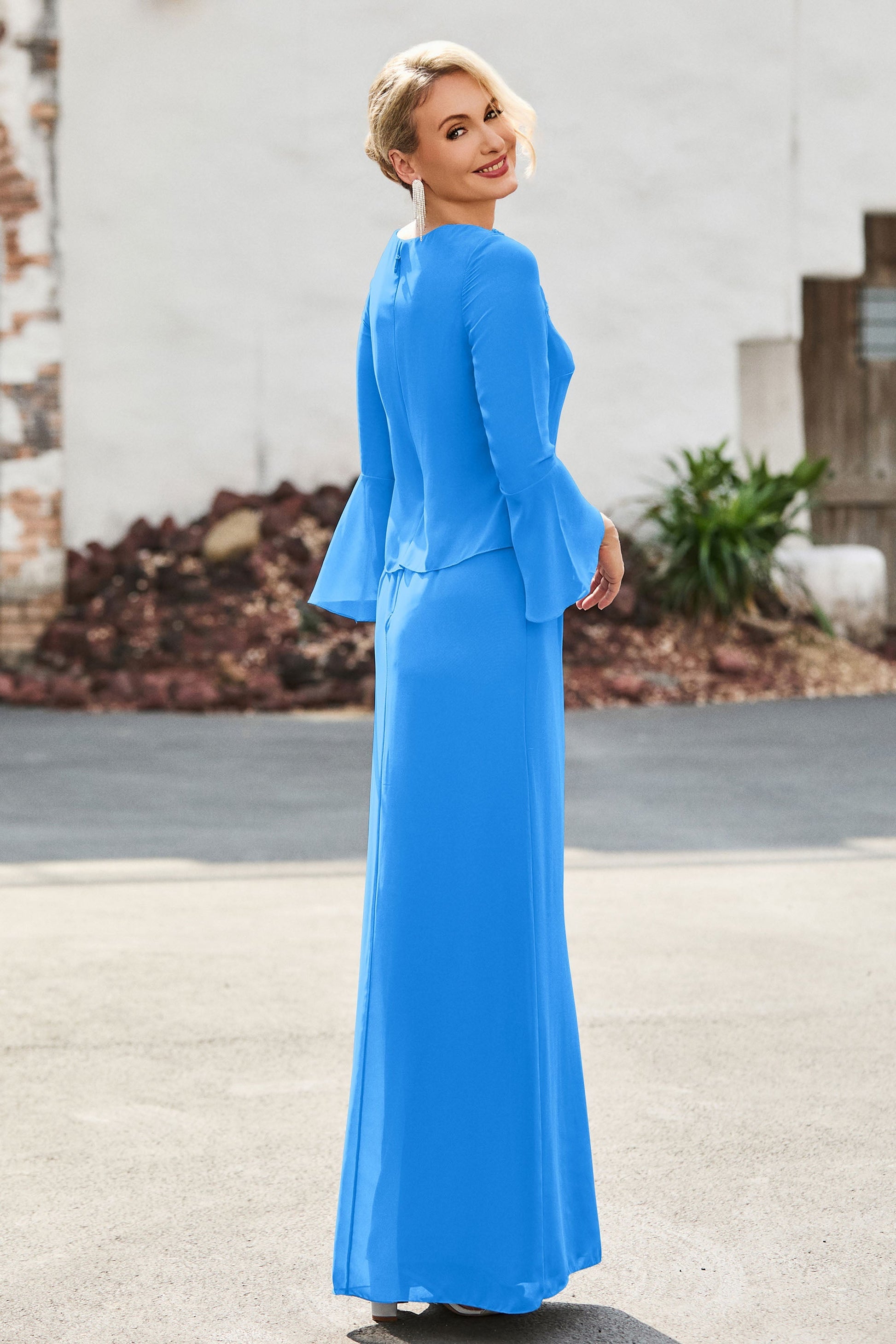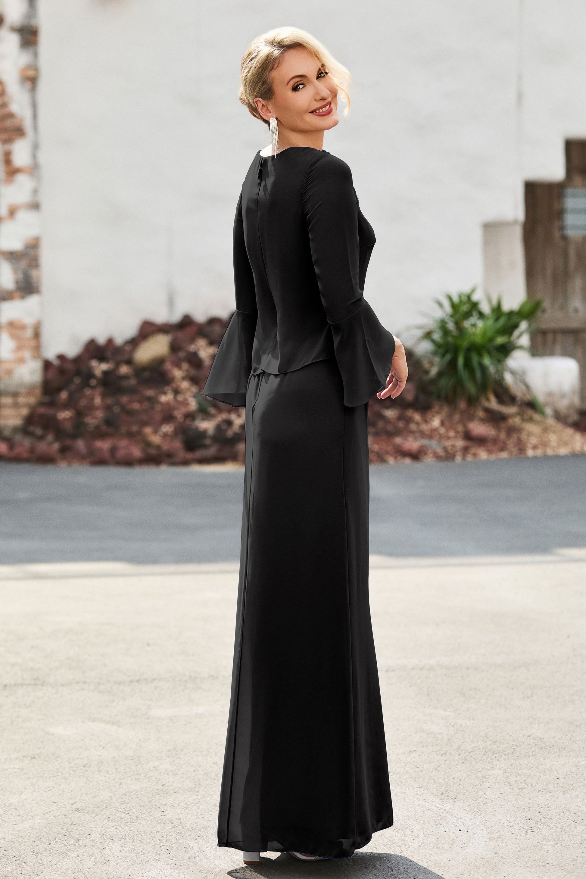 This dress features a flattering sheath silhouette, with a beaded v-neckline that exudes sophistication. A side slit adds graceful movement, while delicate beaded embellishments provide a hint of sparkle, enhancing its elegant charm. Perfect for formal occasions, this dress blends timeless style with modern glamour.