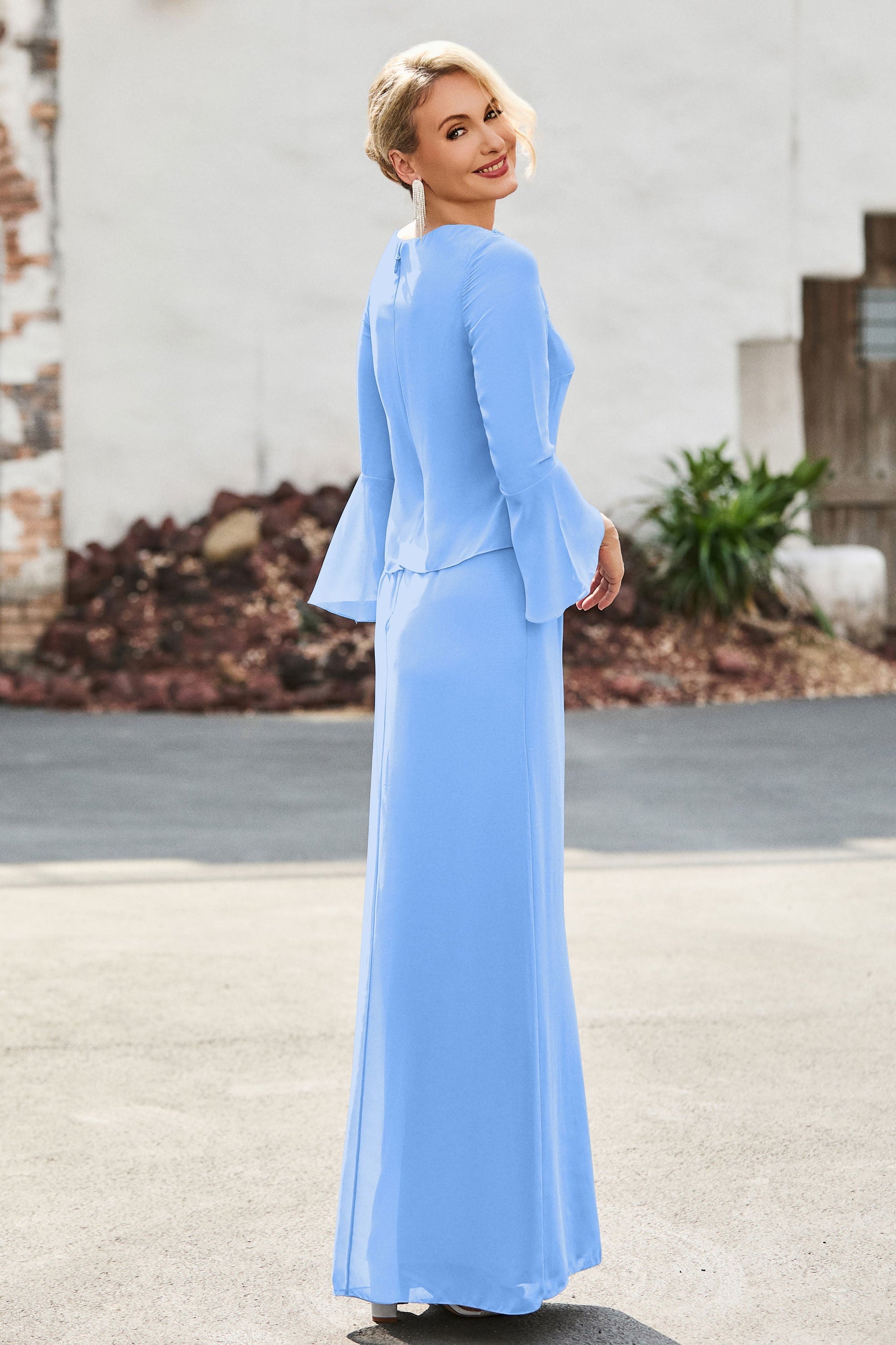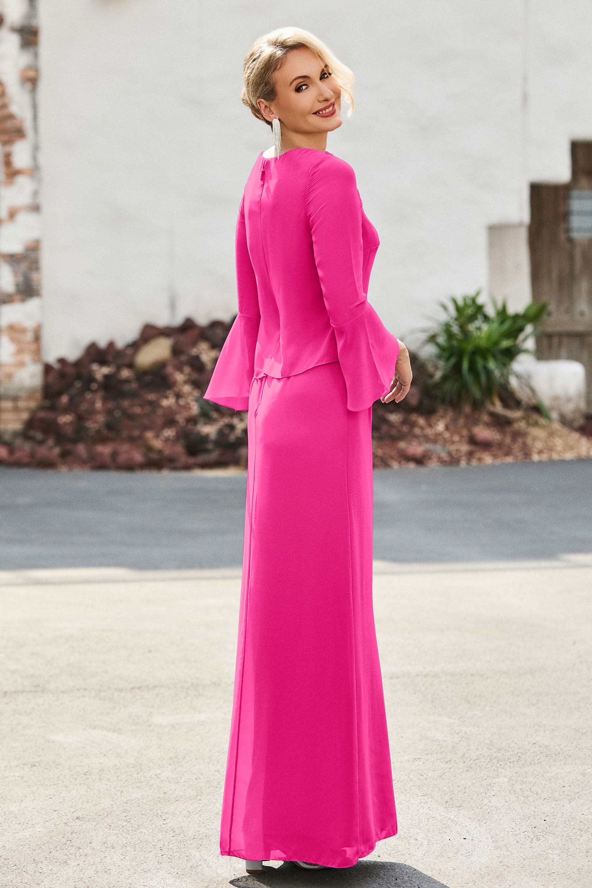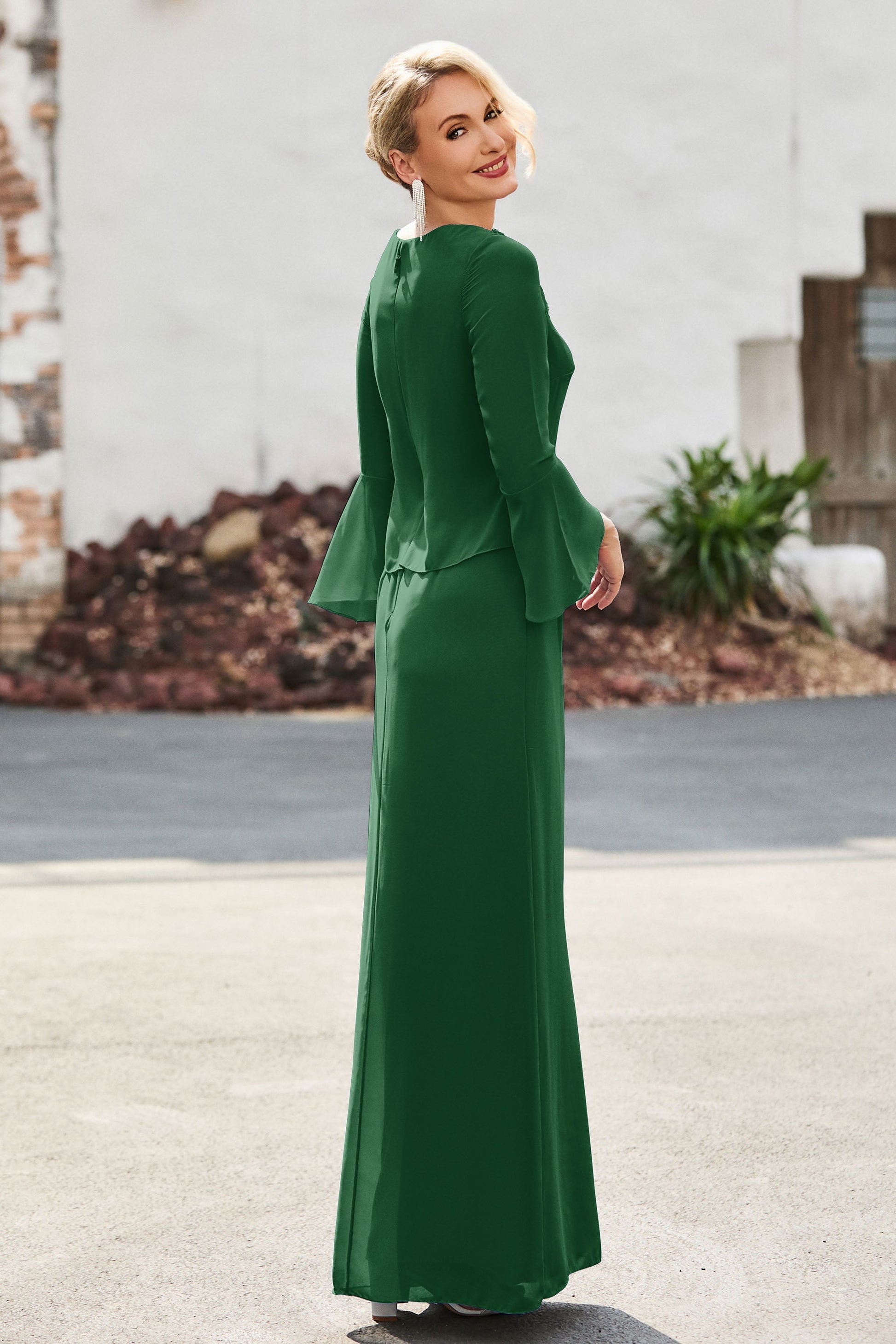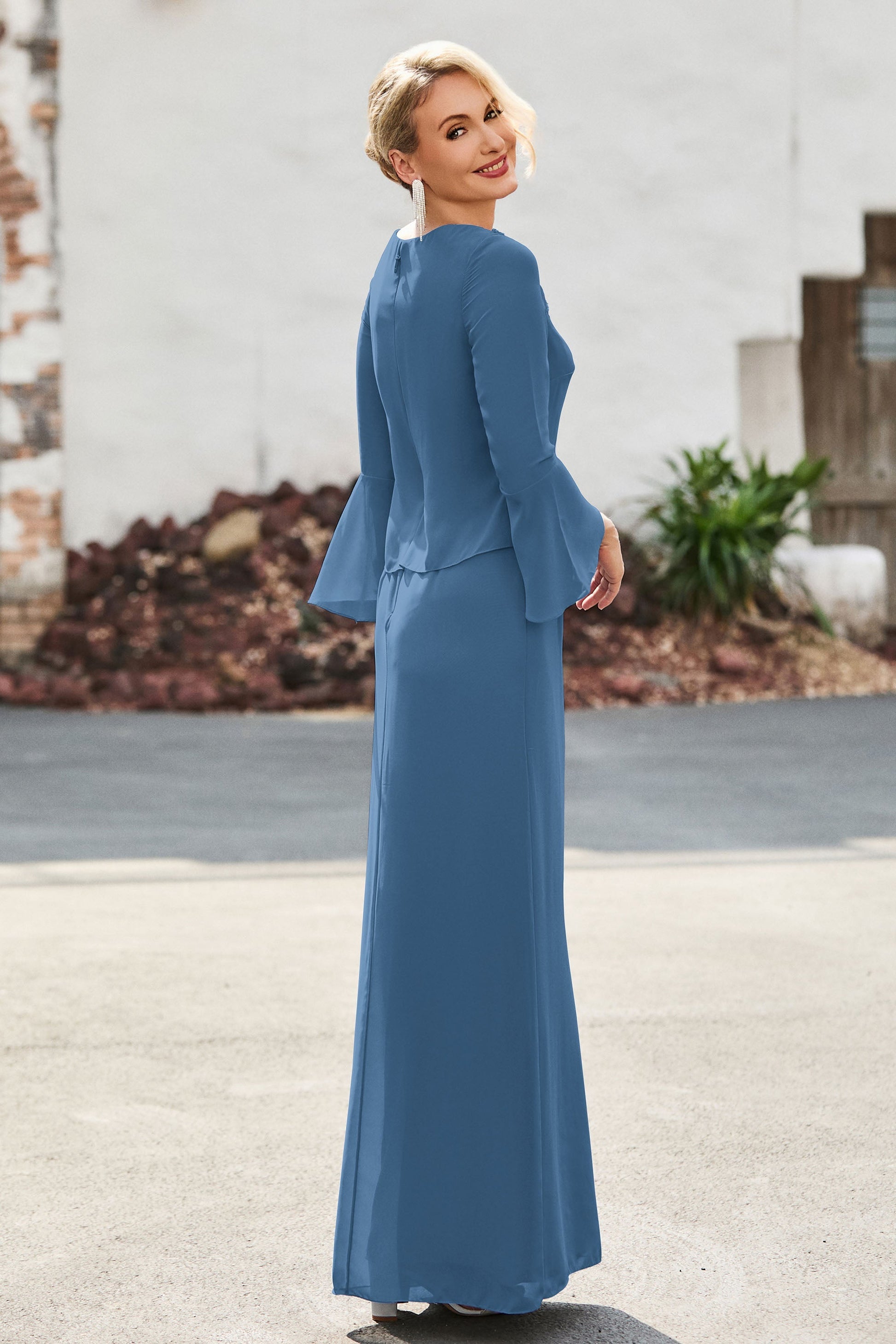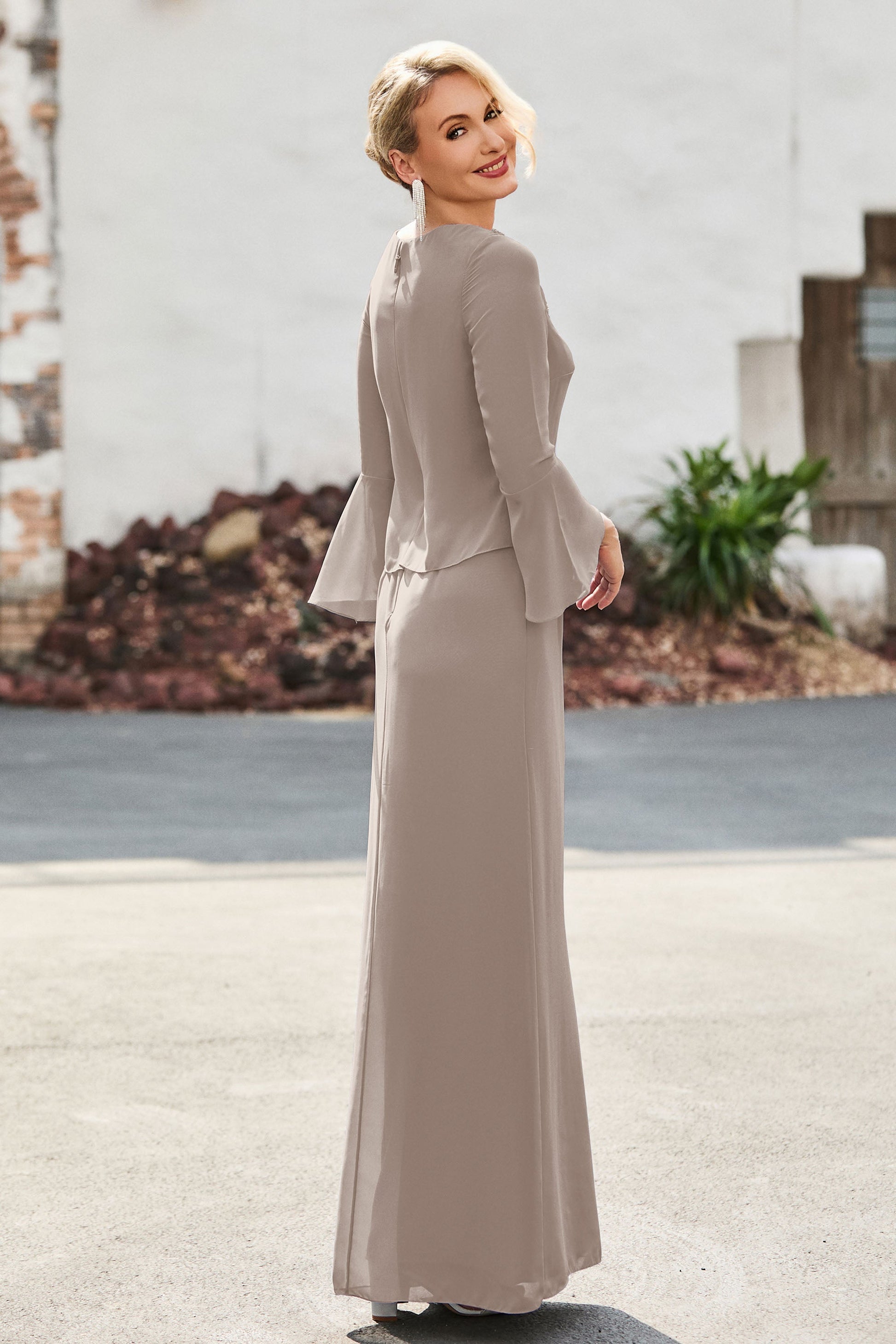 This dress features a flattering sheath silhouette, with a beaded v-neckline that exudes sophistication. A side slit adds graceful movement, while delicate beaded embellishments provide a hint of sparkle, enhancing its elegant charm. Perfect for formal occasions, this dress blends timeless style with modern glamour.