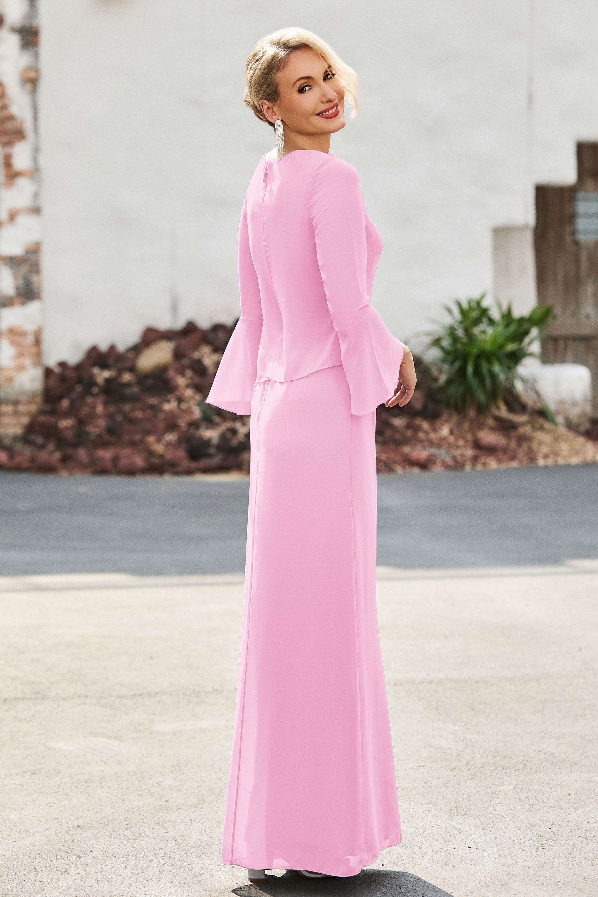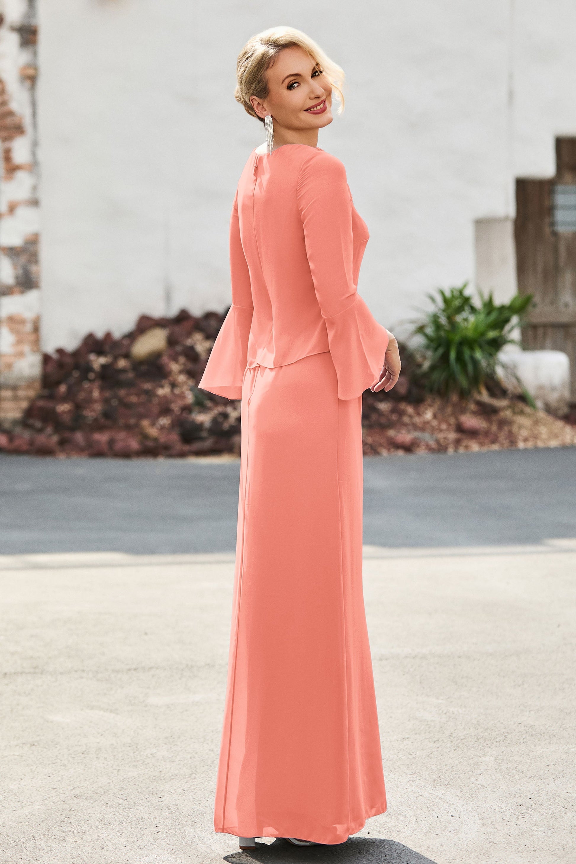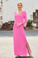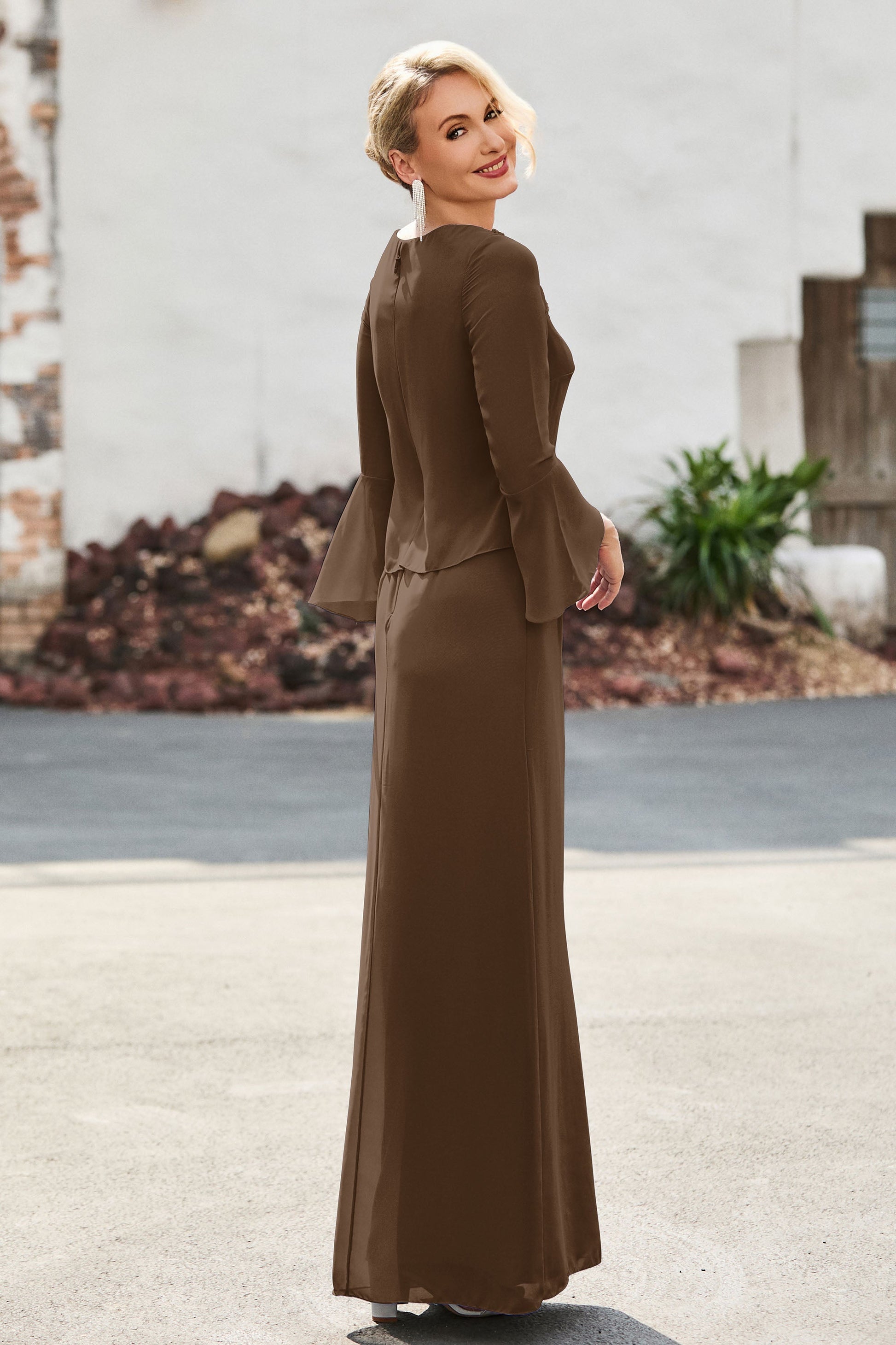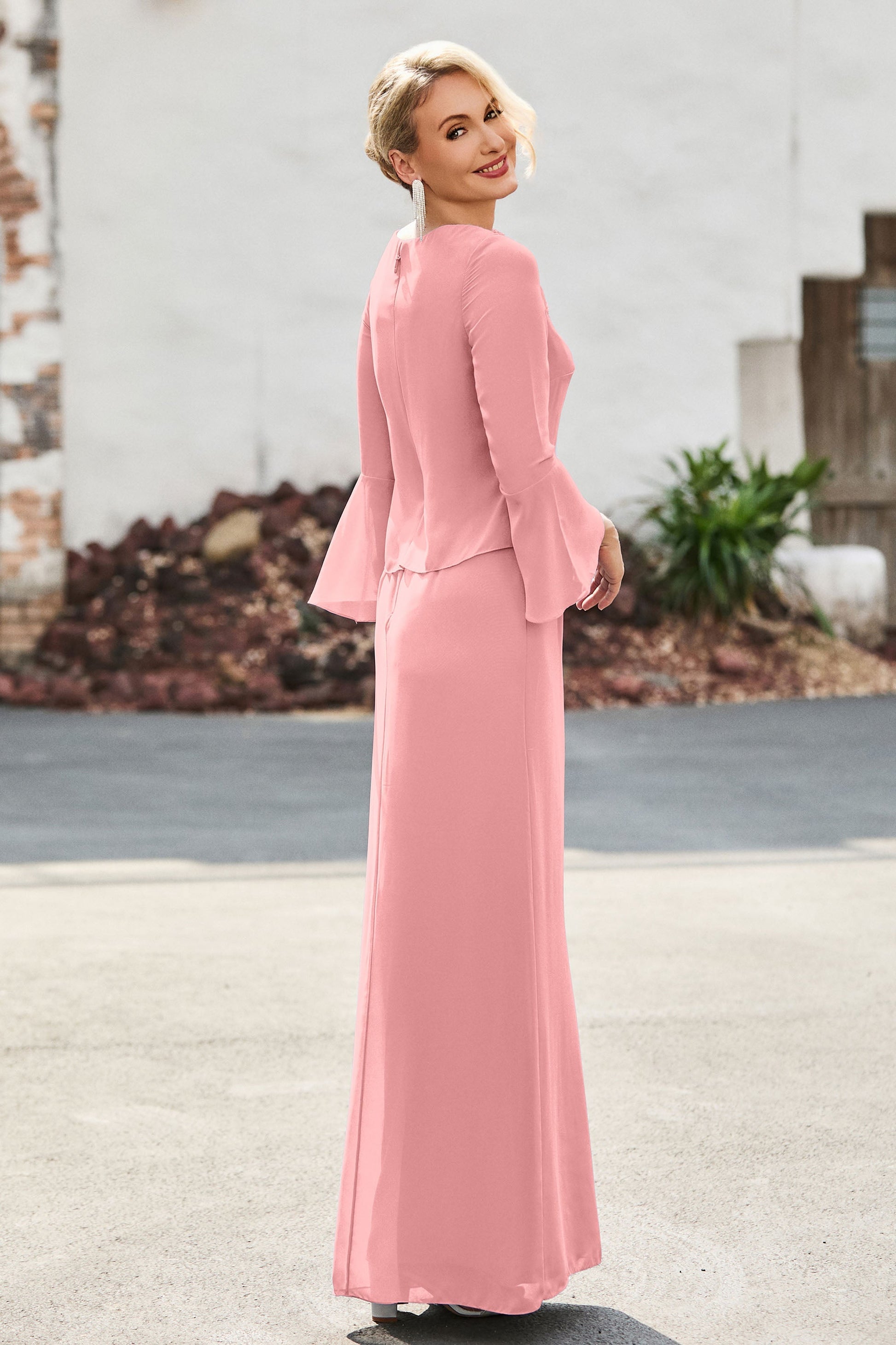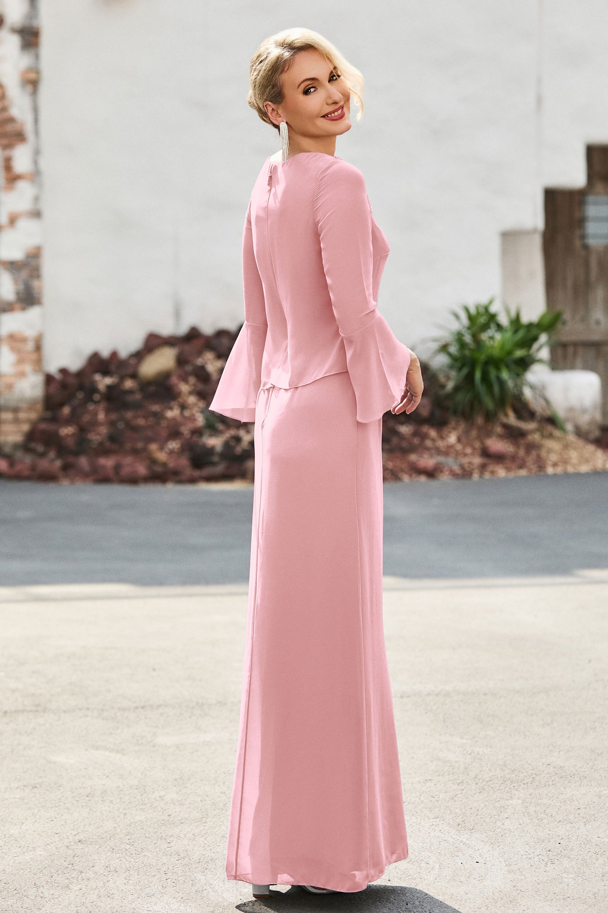 This dress features a flattering sheath silhouette, with a beaded v-neckline that exudes sophistication. A side slit adds graceful movement, while delicate beaded embellishments provide a hint of sparkle, enhancing its elegant charm. Perfect for formal occasions, this dress blends timeless style with modern glamour.