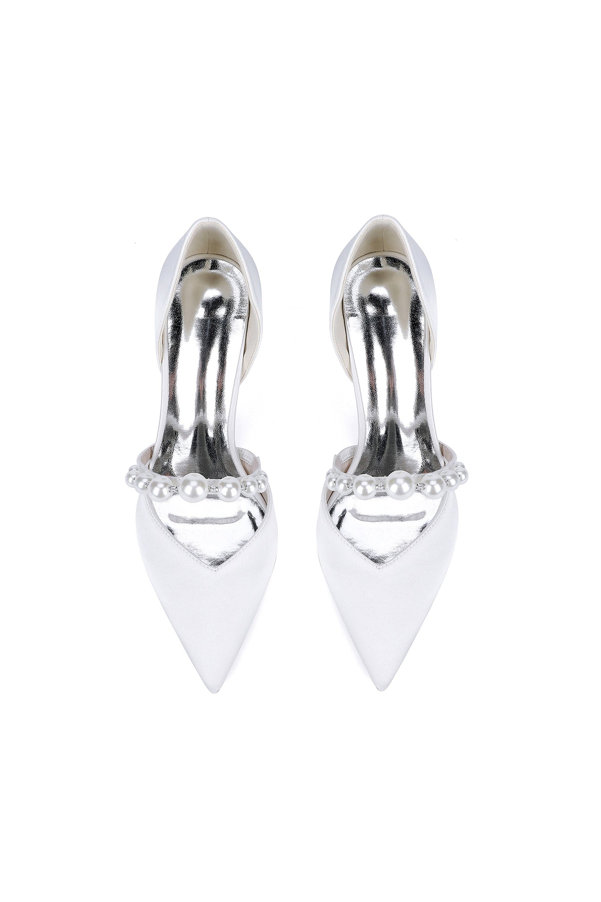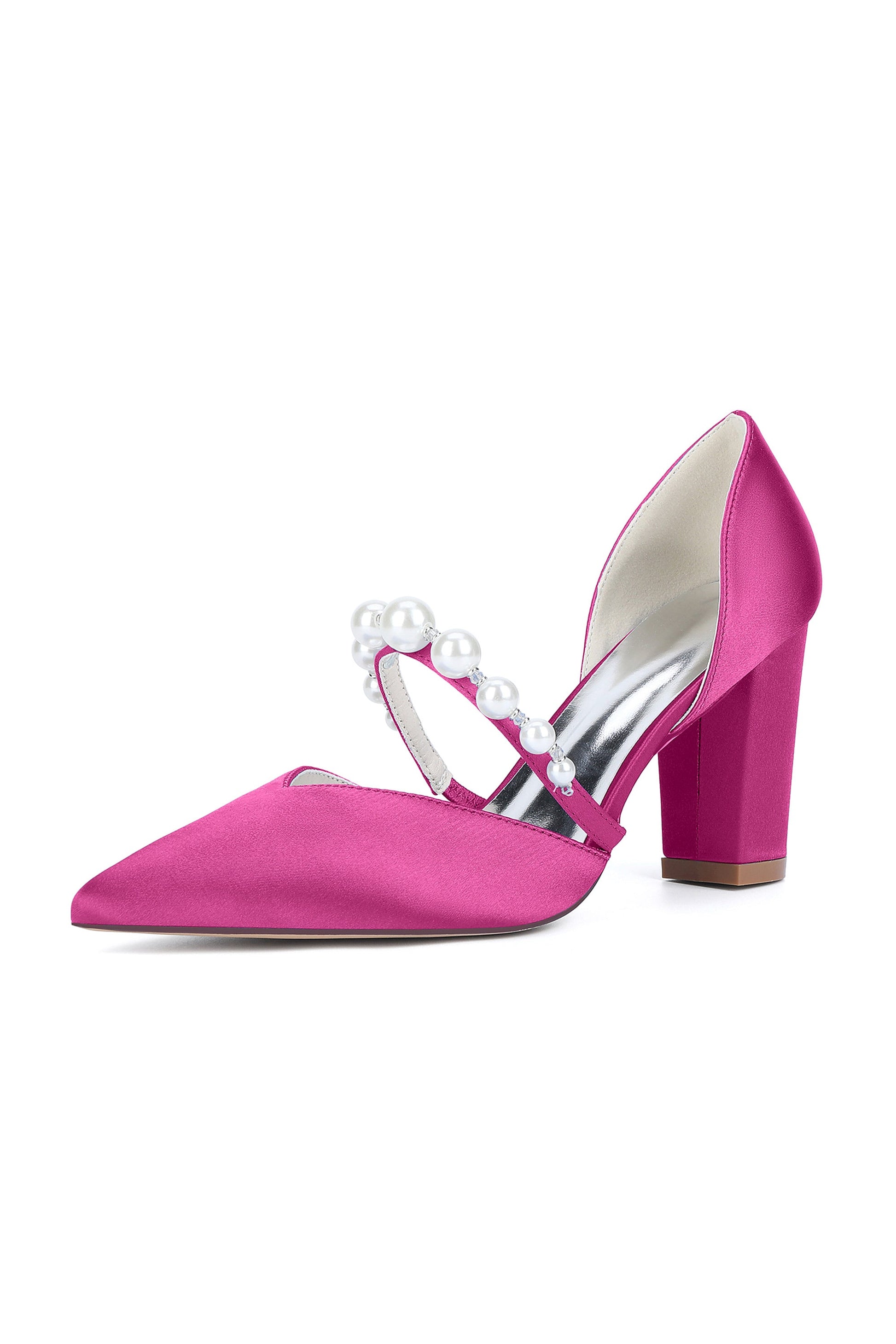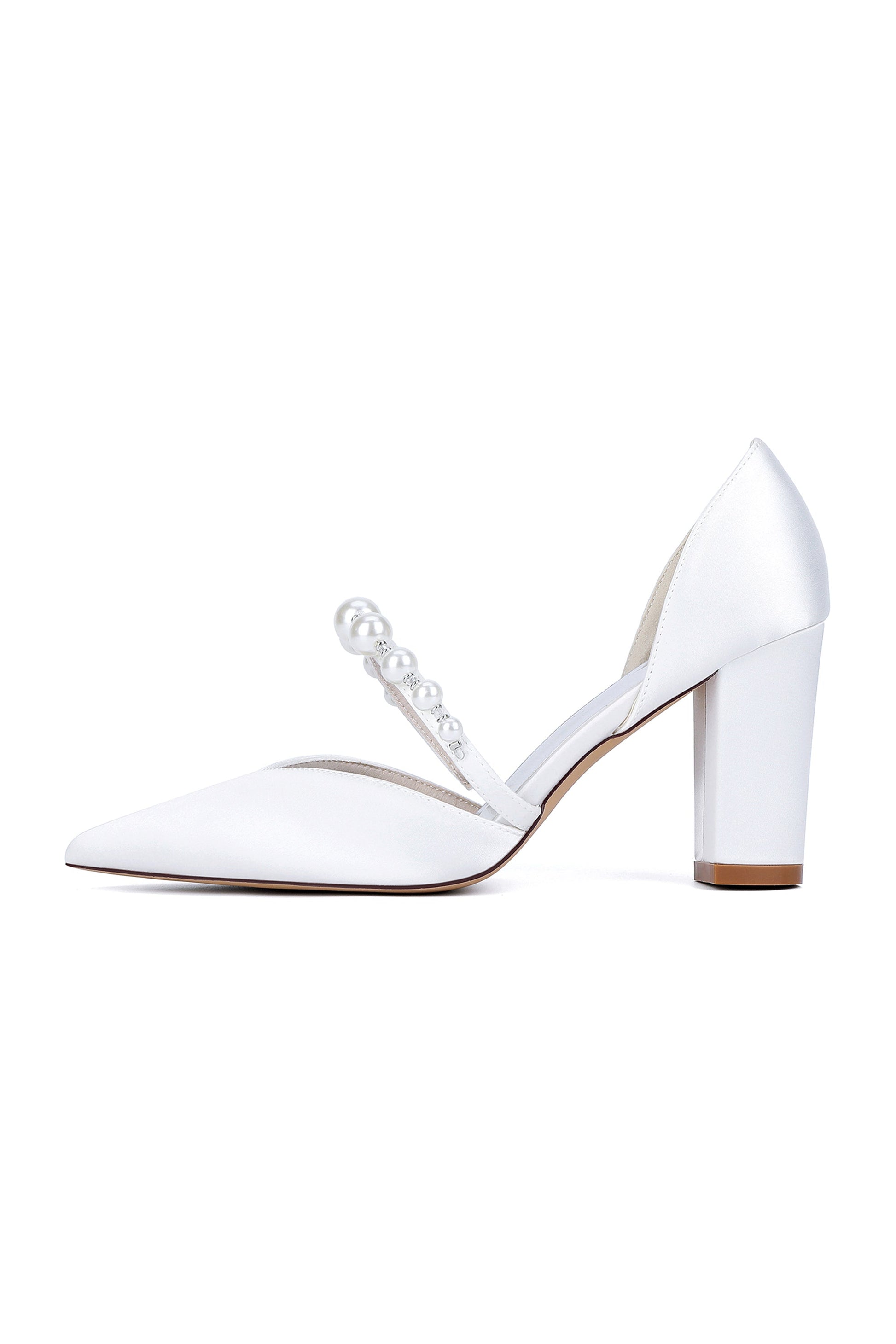 Elevate your look with these high heels. Featuring delicate pearl-adorned straps and a sharp pointed toe, they combine elegance with modern style. The high chunky heel provides both height and stability, perfect for making a statement at any event.