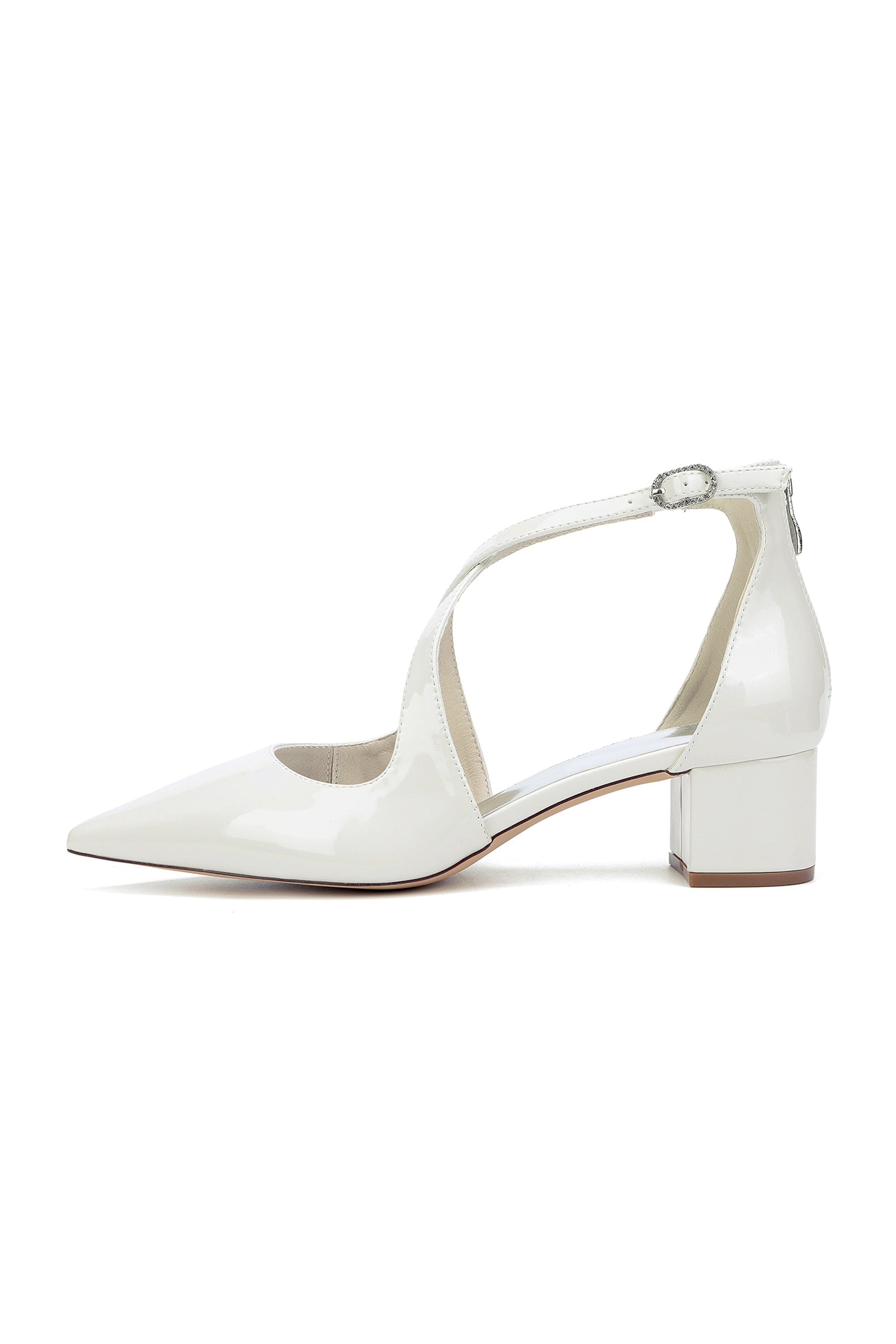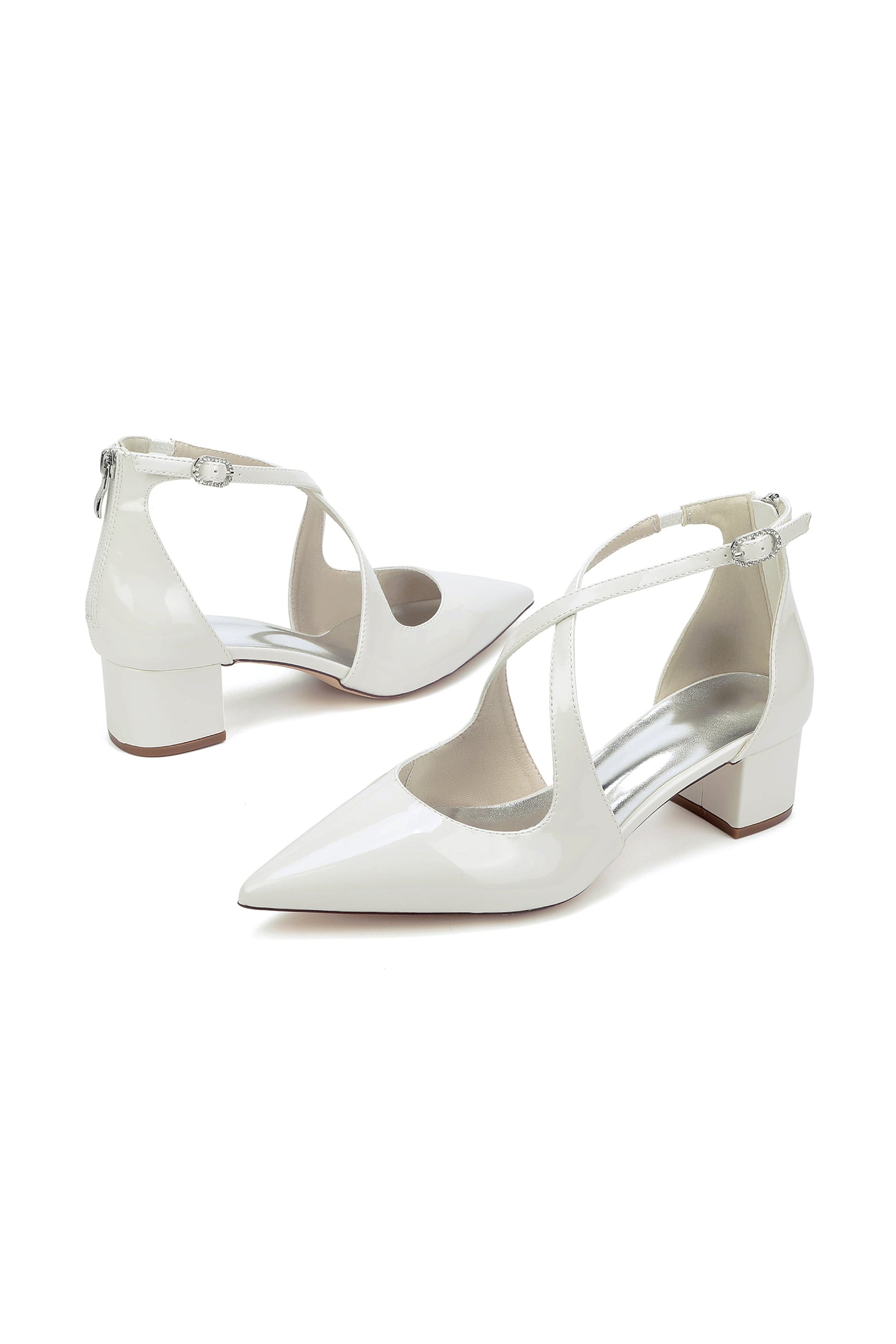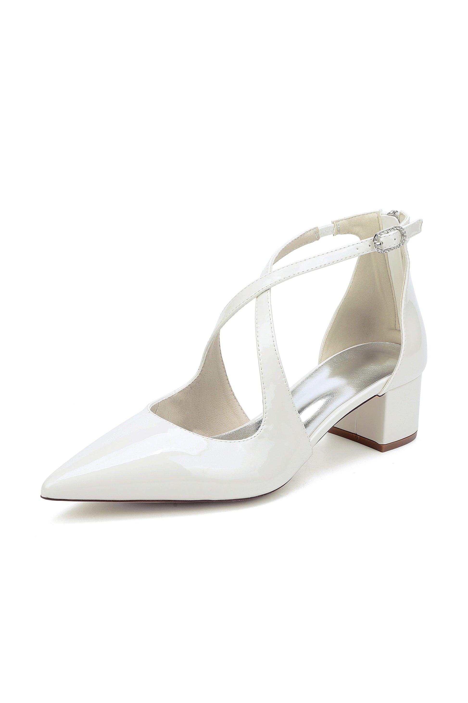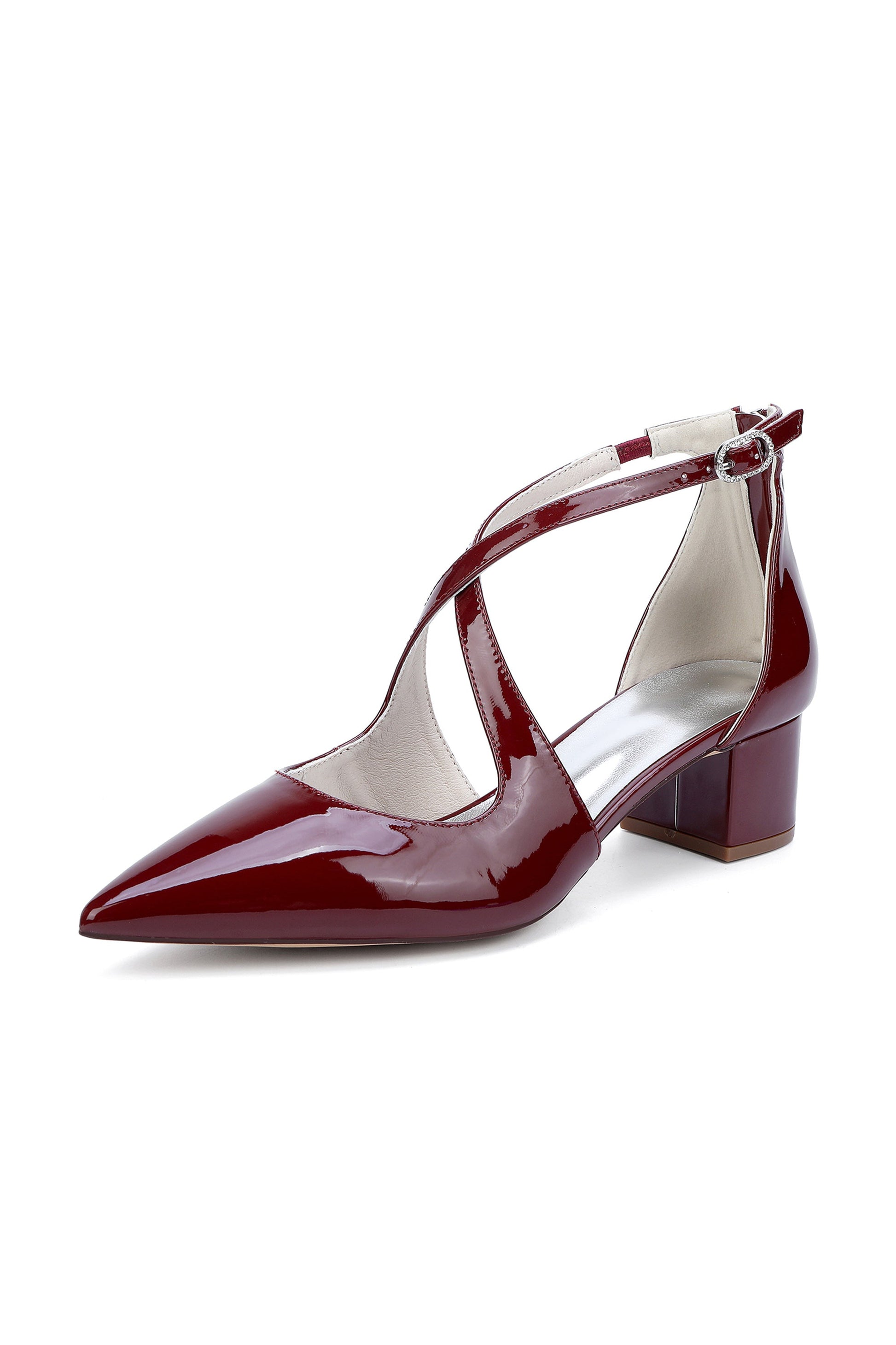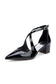 Pointed Toe Cross-Strap Mirror Patent Chunky Heels