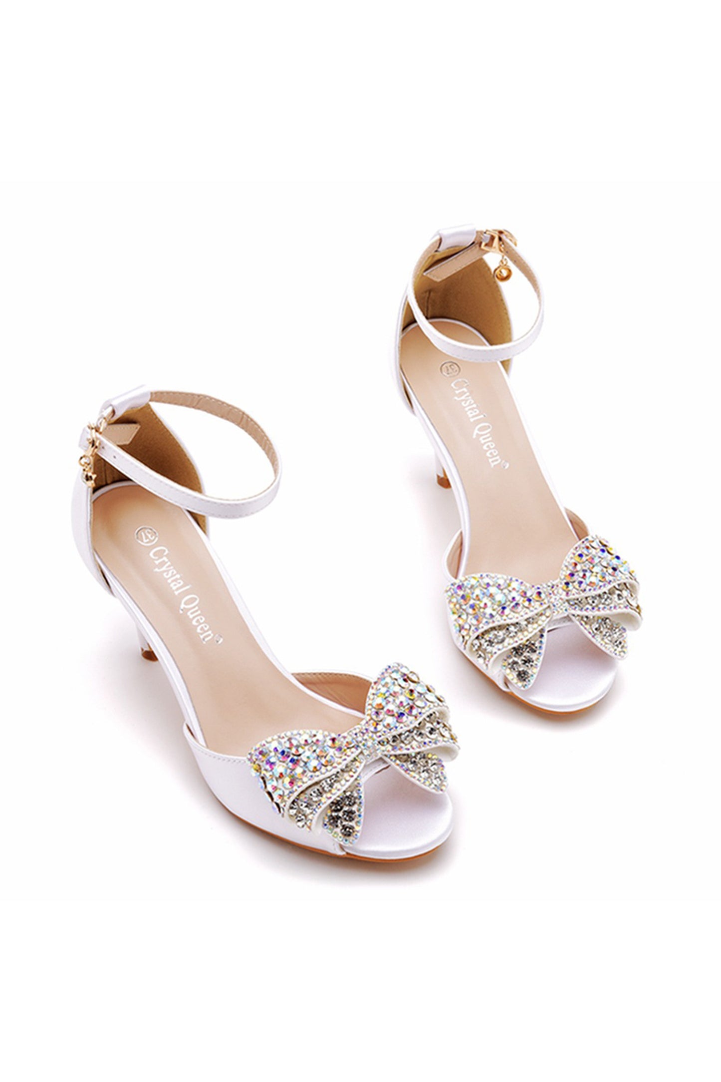 Rhinestone Bow Tie Peep Toe One-Strap High Heel Sandals