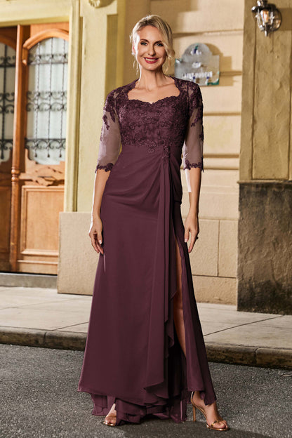 Square Neck Lace Chiffon Sheath Dress With Slit