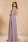 V-neck Bows A-Line Chiffon Floor-Length Dress With Slit