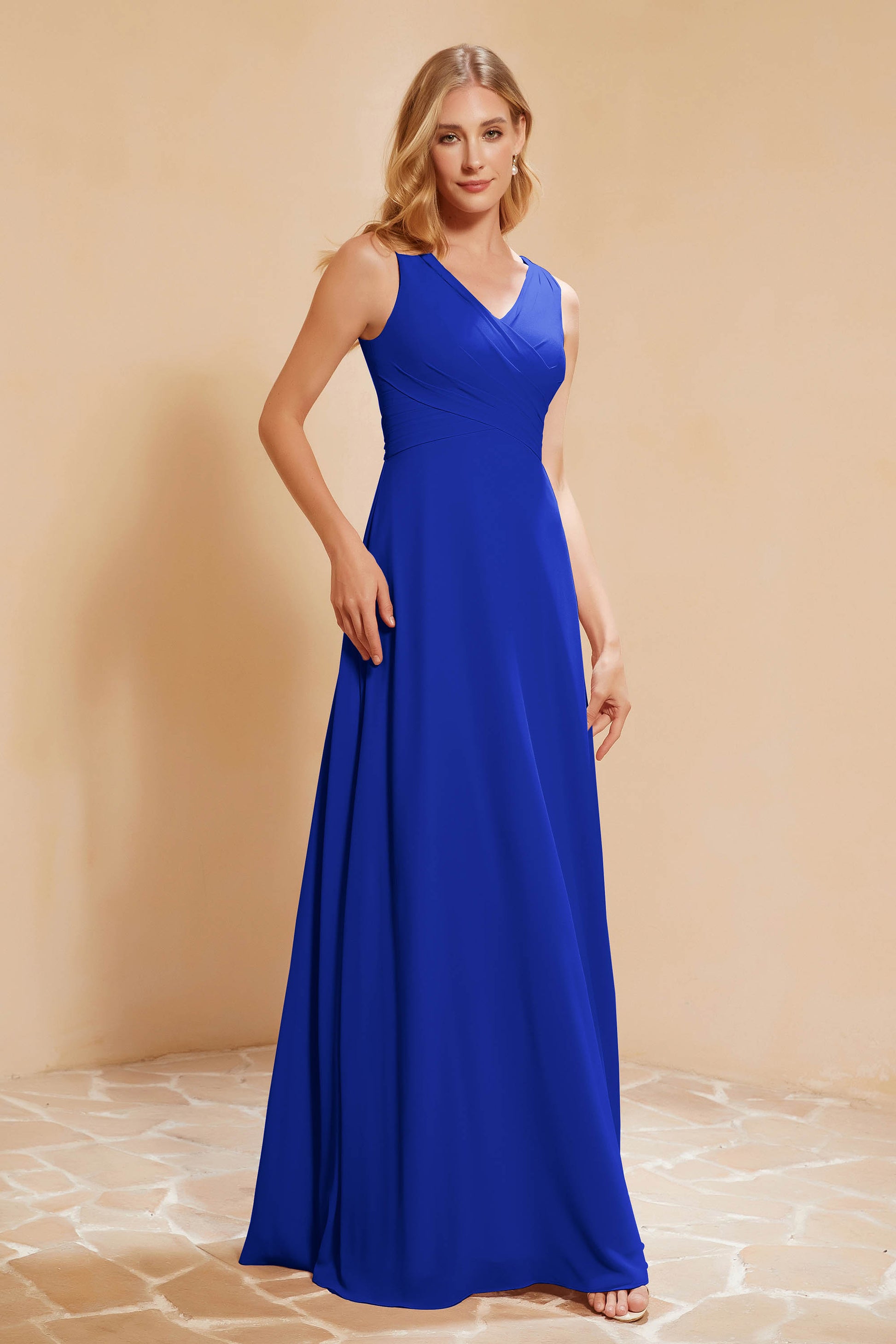 V-neck Sleeveless Pleated A-Line Chiffon Floor-Length Dress